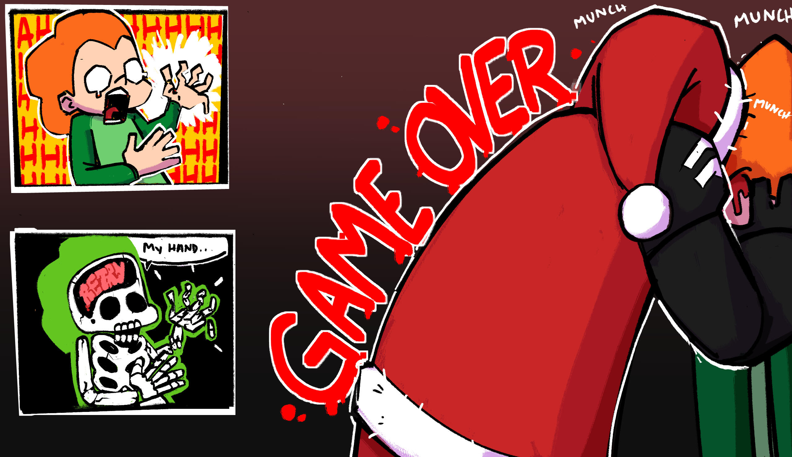 For this board, I was assigned the task of boarding a section of a "Choose your own adventure" style comic. The boards are a combination of roughs and clean boards. The red was to allow the script to still be visible on our pages as that was the director's request. I was only asked to finish some, not all of the pages by the director to allow others an opportunity to board as well (I had two assistants working with me to do a 2nd pass board based on my rough ones). The boards shown here are a combo of my 2nd pass boards/clean boards, and my rough boards I eventually passed off to. The director also asked me to render/finalize a few shots to completion as well (shown below), as well as reboard another persons sequence and bring that one to completion as well.